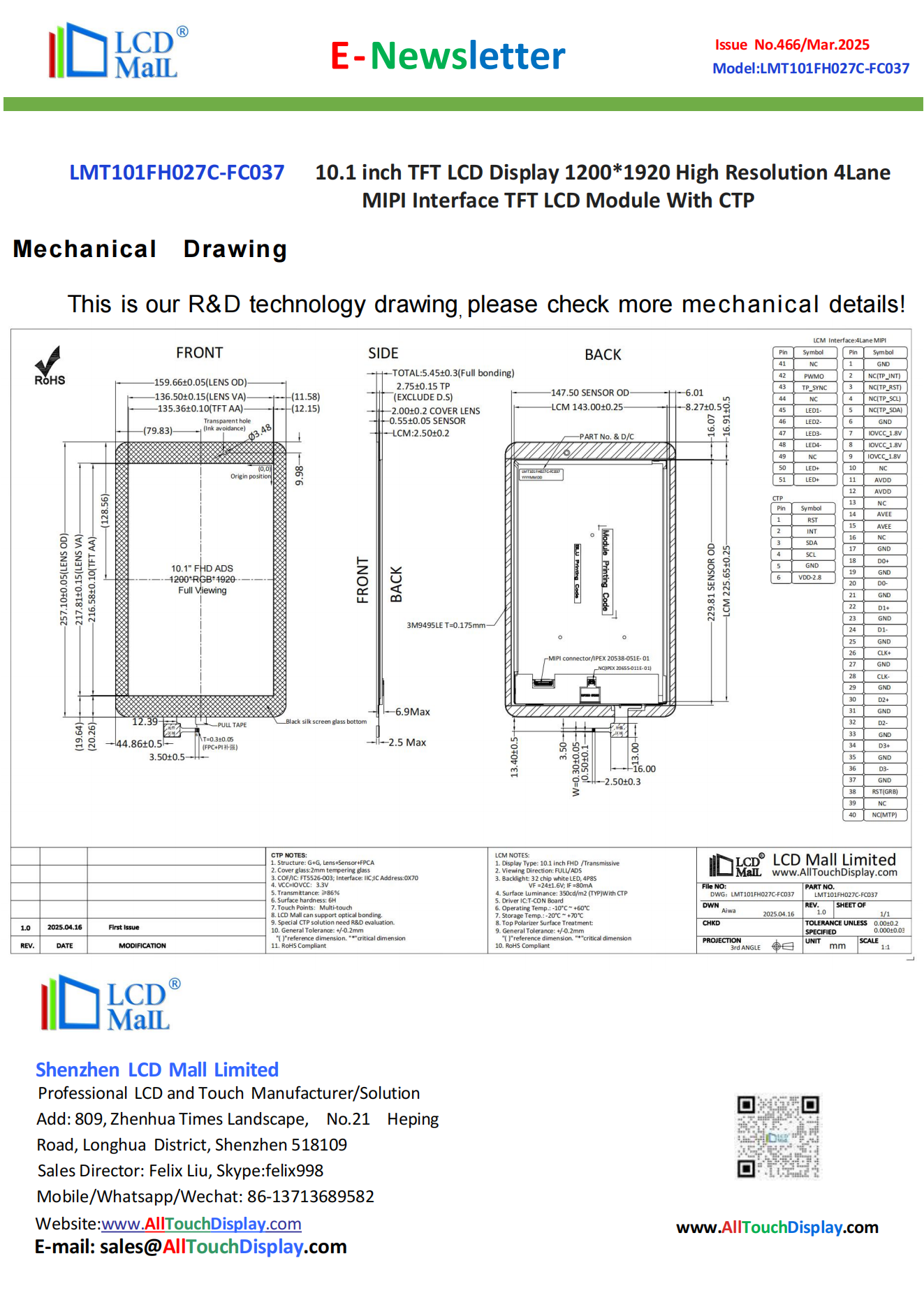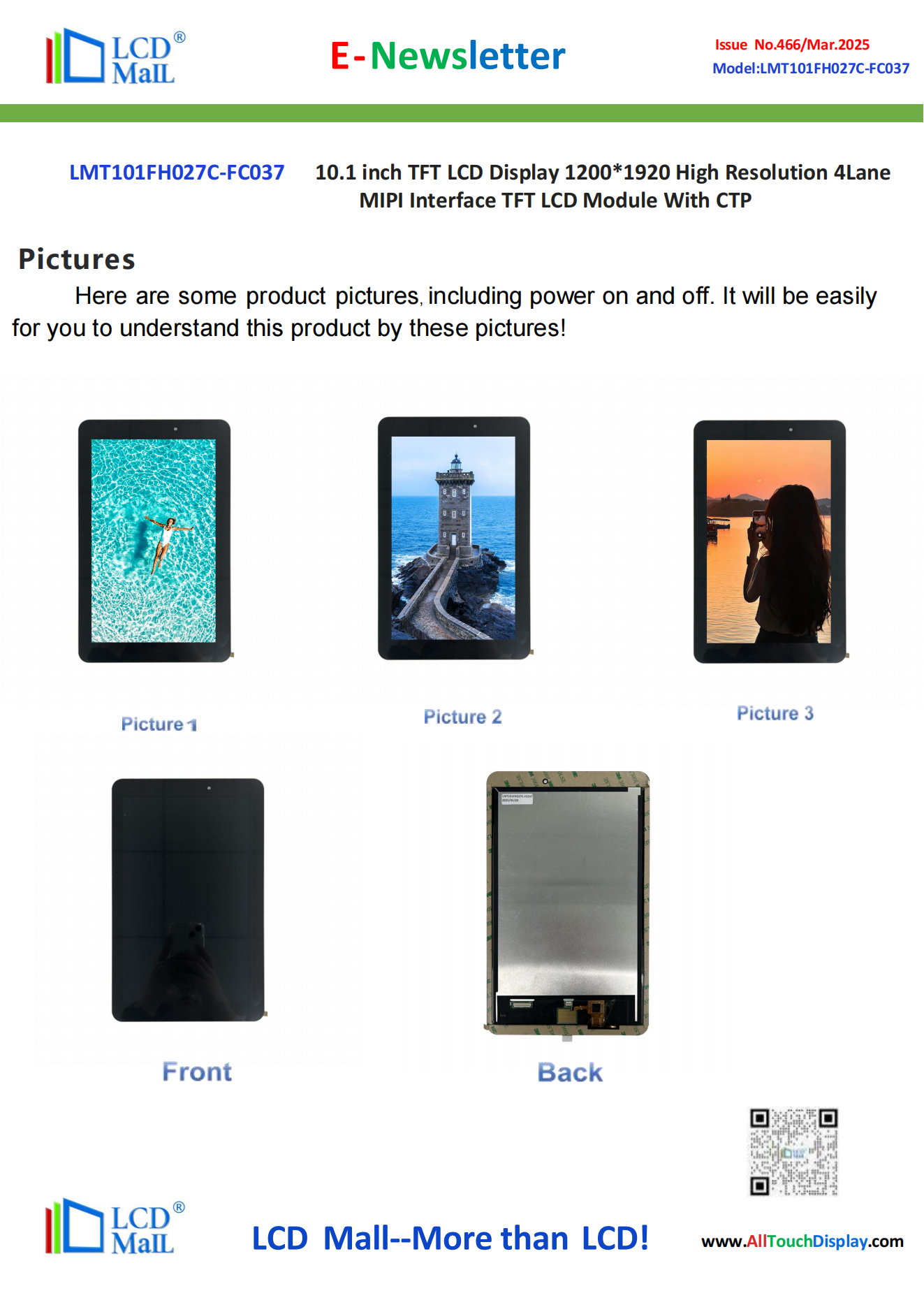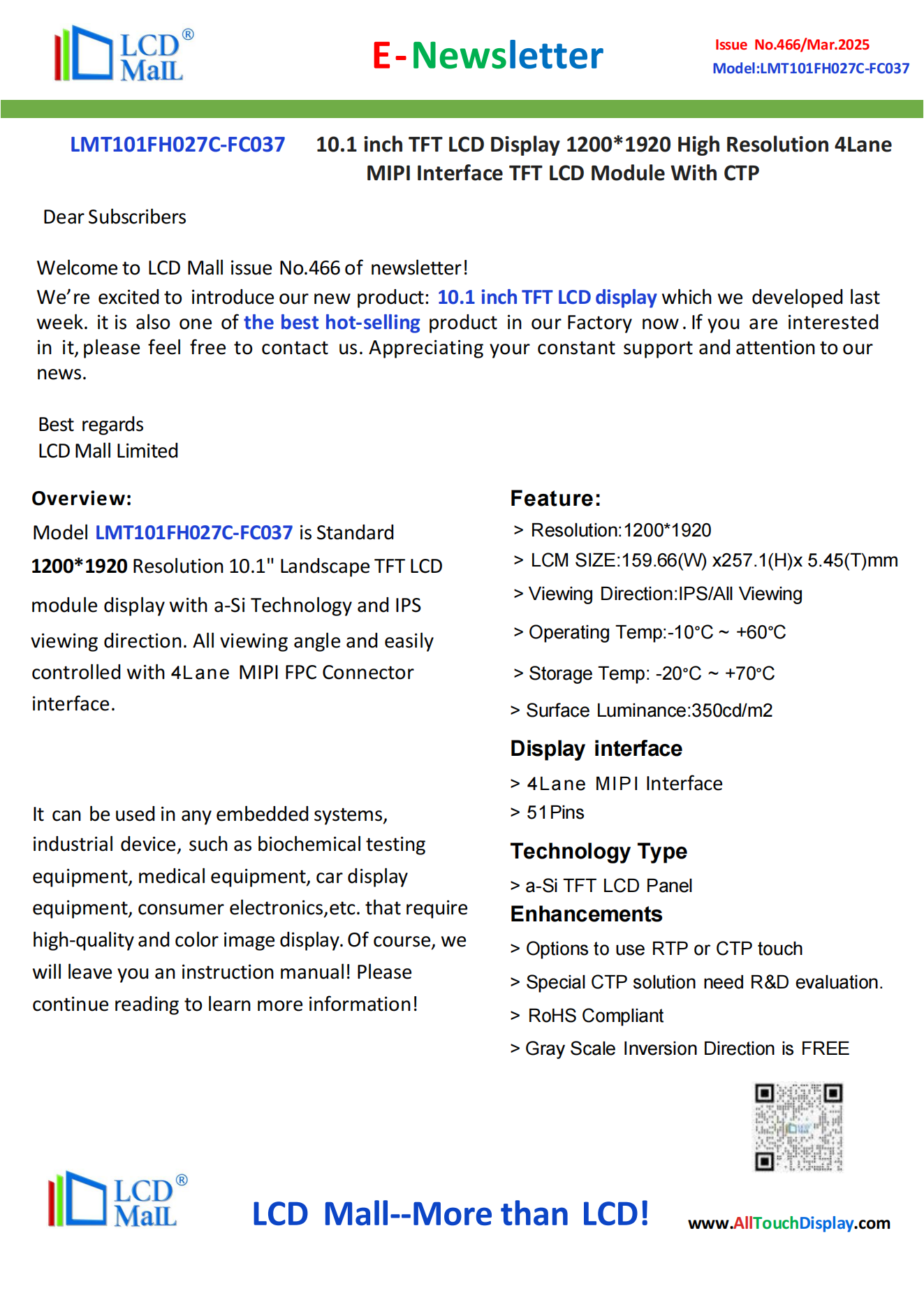 Thank you for your message! We are LCD Mall, committed to providing customers with high-quality services and products. Our salesperson will contact you as soon as possible. If you have urgent questions, please feel free to contact us directly through WhatsApp or email: WhatsApp: 86-13713689582/ info@AllTouchDisplay.com .