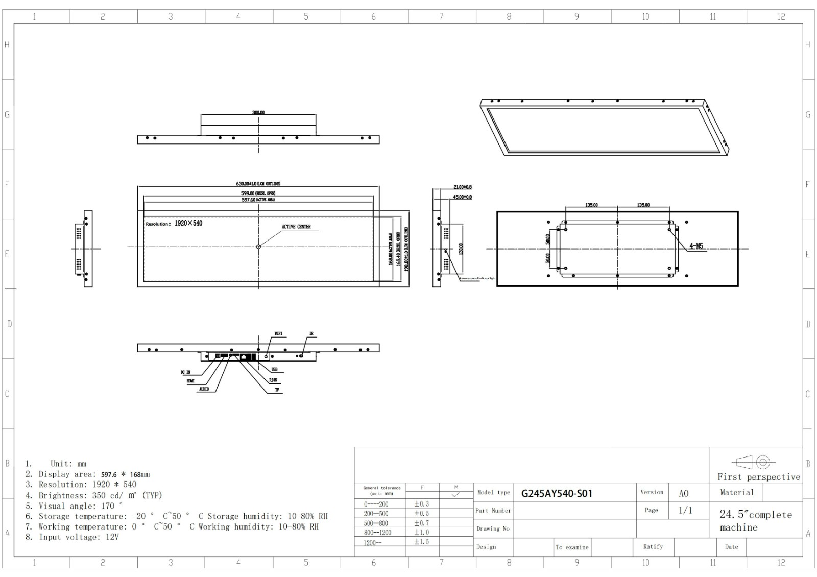 Display Size | 597.6(L)*168(V) | MM | ||