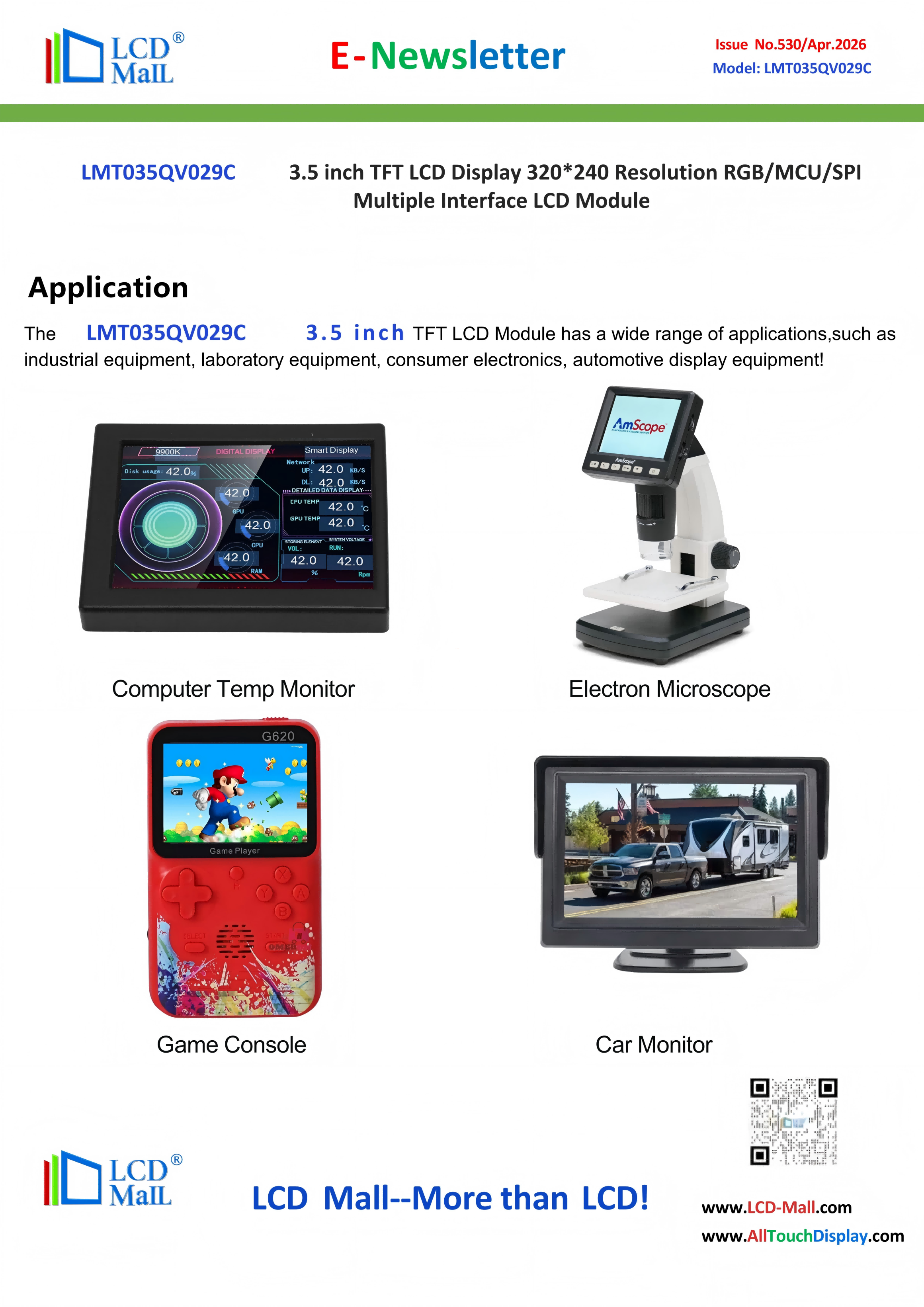 Home  >  NEWS  >  3.5 inch TFT LCD Display 320*240 Resolution RGB/MCU/SPI Multiple Interface LCD Module