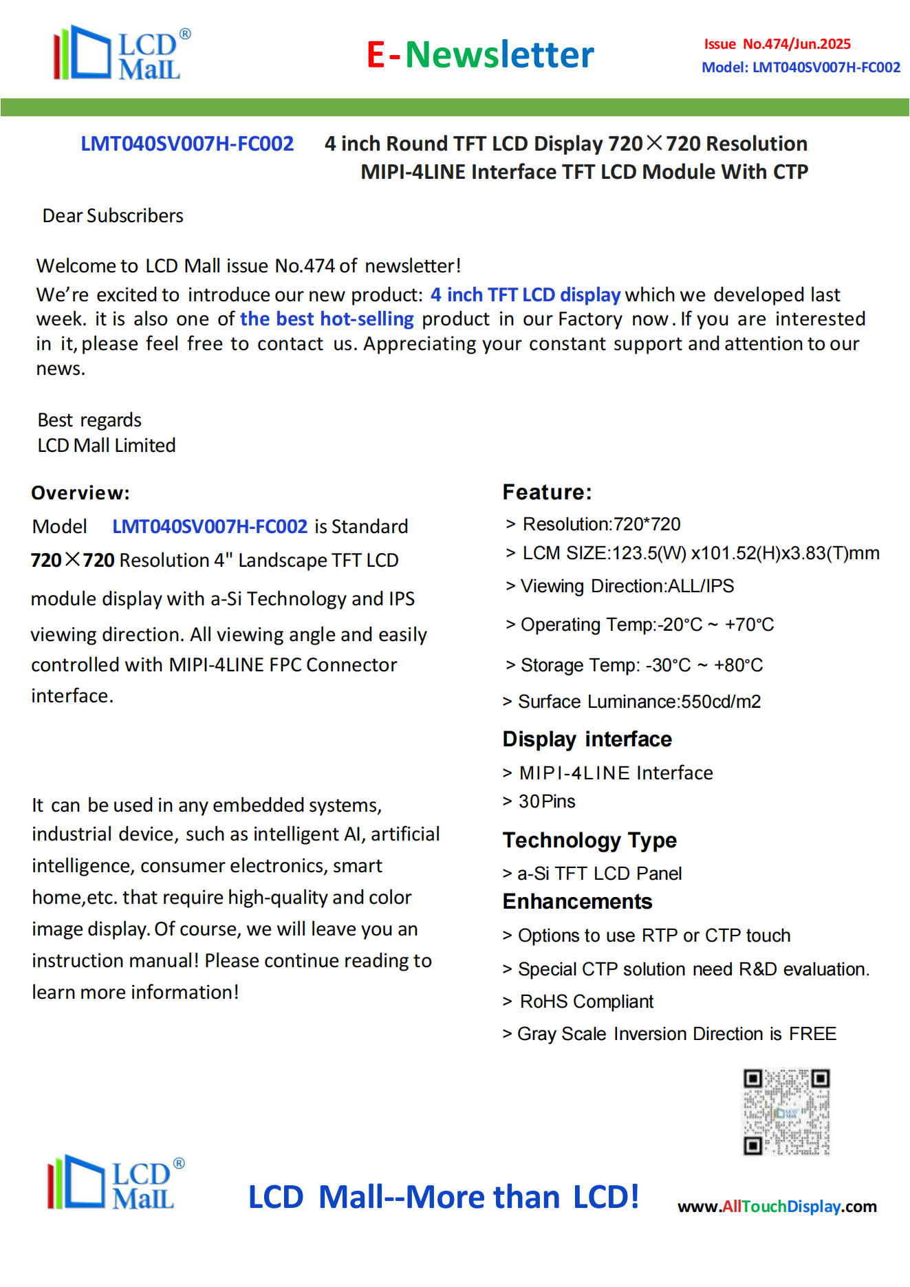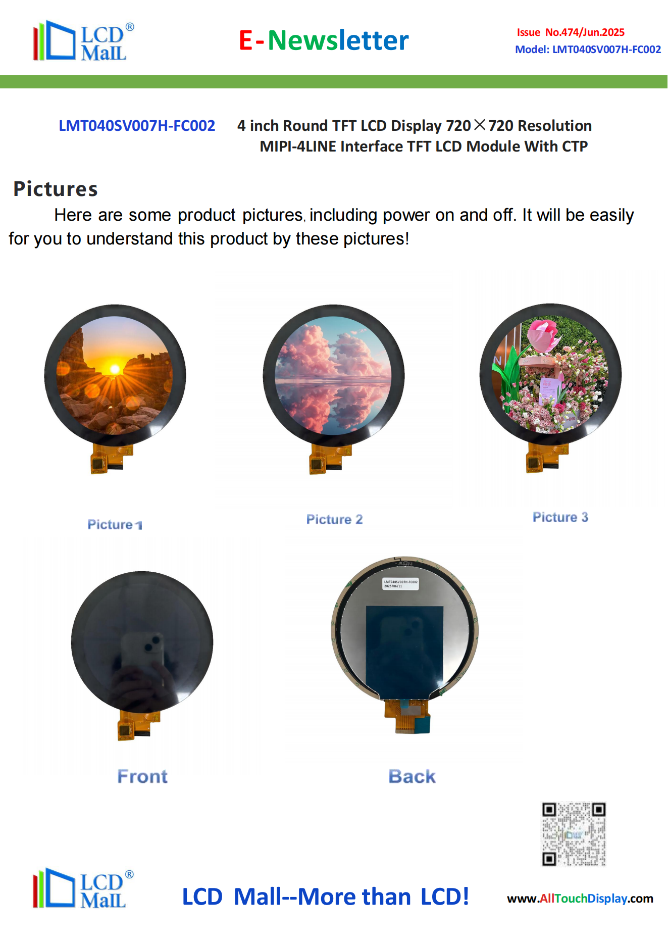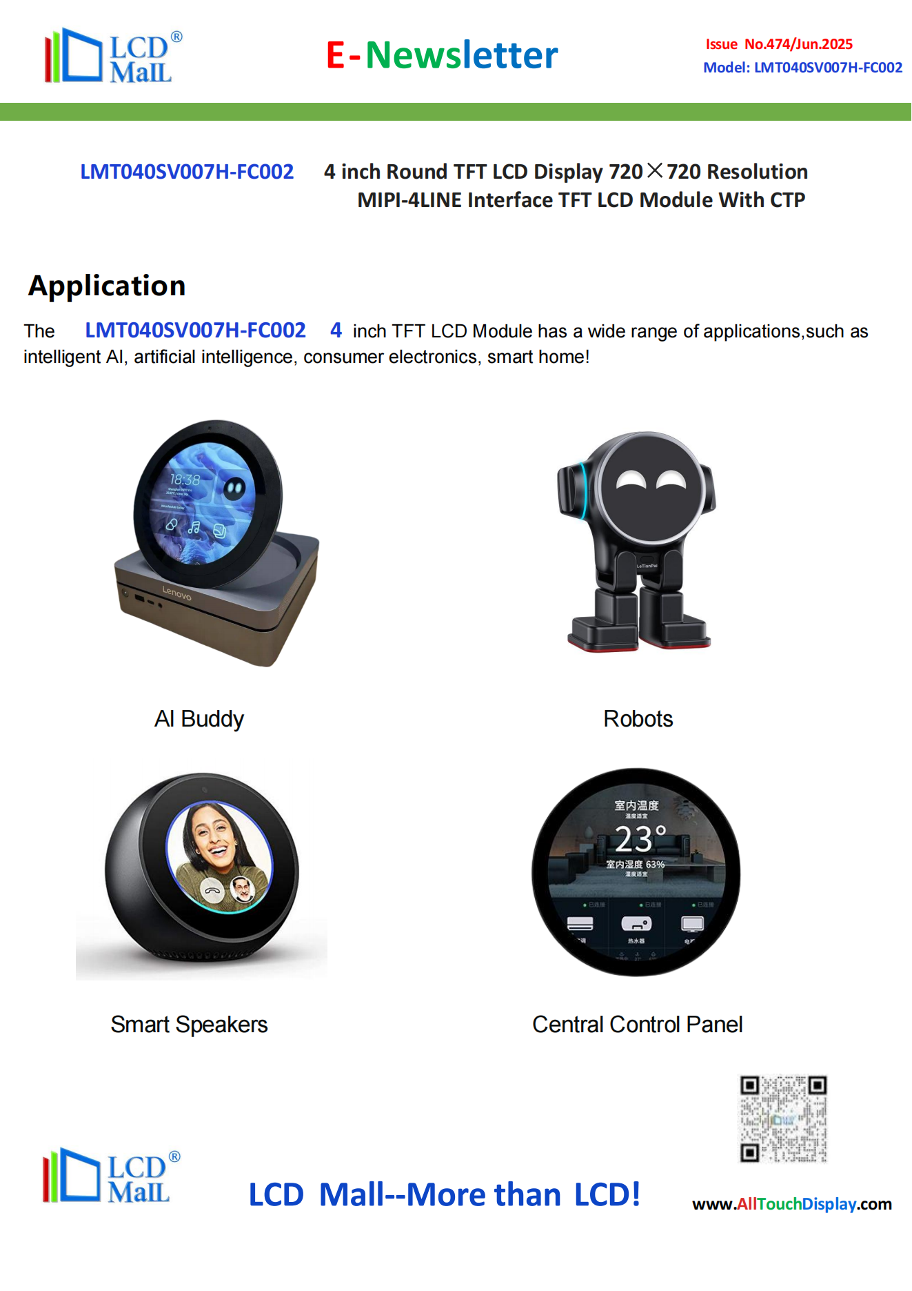 Home  >  NEWS  >  4 inch Round TFT LCD Display 720×720 Resolution MIPI-4LINE Interface TFT LCD Module With CTP