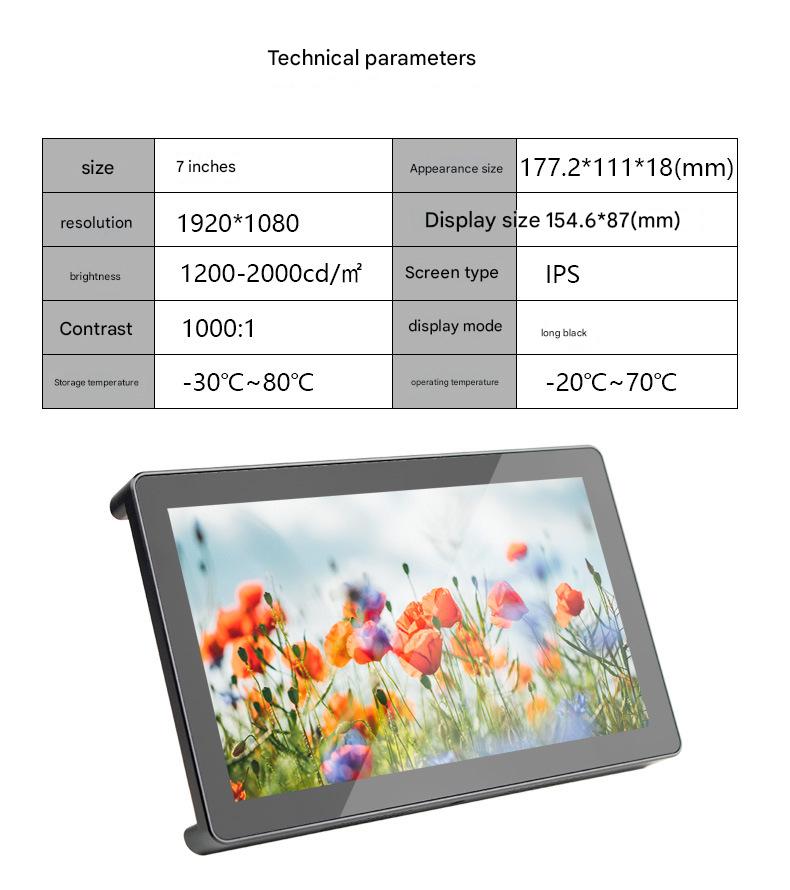 INCELL Touch Screen 7 Inch 1920 * 1080 FHD High-resolution Wide Temperature High Brightness 2000nit LCD Monitor