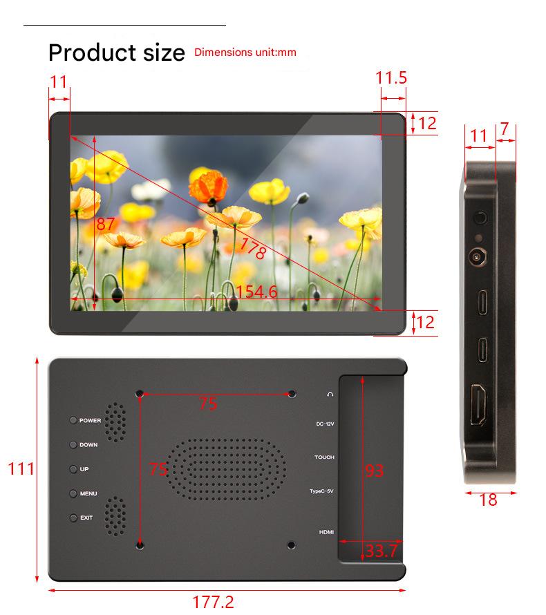7 Inch INCELL Touch Screen 1920 * 1080 FHD High-resolution Wide Temperature High Brightness 2000nit LCD Monitor