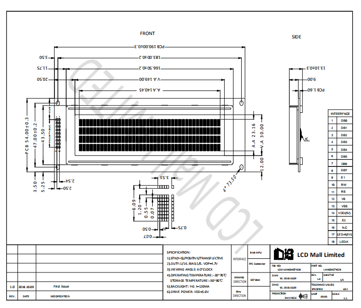 16x2, 20x2, 20x4, 24x2 formats with 5x8 dot matrix.
