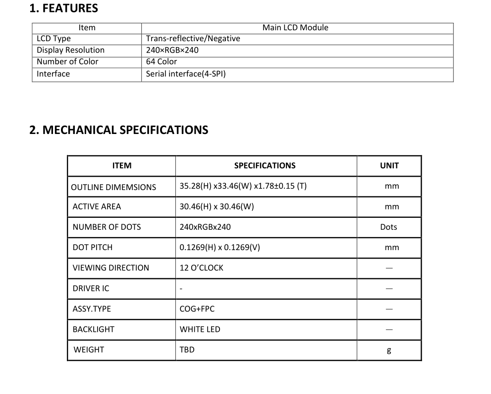 The 2.4 inch Portrait TFT LCD display offers a 240x320 resolution, providing clear and crisp visuals for compact devices like smartwatches. With a brightness of 400nits, it ensures good visibility in various lighting conditions, enhancing user experience. This display features a 45 pin RGB interface, ensuring seamless connection and reliable data transmission between the screen and the device. Its small form factor makes it an ideal choice for wearable technology, offering both efficient power consumption and high-quality graphics. Whether for notifications, fitness tracking, or timekeeping, this display module is designed for optimal performance in modern smartwatches.