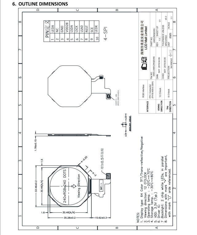 2.4 inch Portrait TFT LCD Display 240*320 Resolution 400nits Brightness 45pin RGB Interface TFT LCD Module For Smartwatch